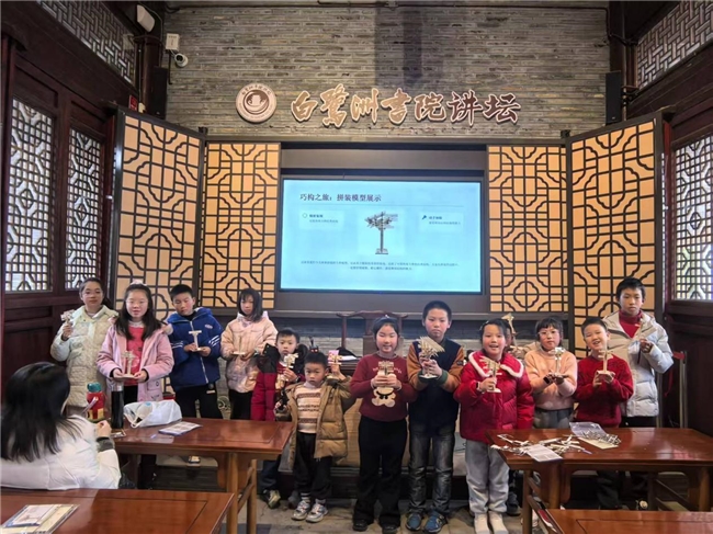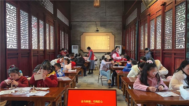 “巧手传薪” 活动每日推出不同主题,从雕版拓印的古朴厚重到活字印刷的智慧结晶,从剪纸艺术的灵动精巧到斗拱拼装的匠心独运,让参与者在动手实践中感悟传统工艺的精湛技艺。160组家庭走进书院,参与非遗手工艺体验。