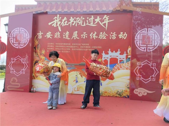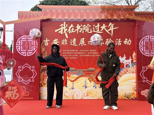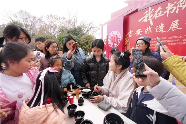 “非遗贺春” 活动集中展示吉州点茶、鲤鱼灯、茅田花灯等吉安本土非物质文化遗产,非遗传承人现场演示制作技艺,让古老的非遗文化在新时代焕发出勃勃生机。井冈山大学的国外留学生也走进书院,亲身感受了中国传统民俗的独特魅力。