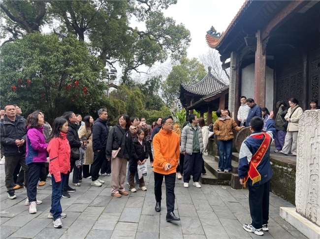 “新春乐游” 公益讲解活动从除夕持续到正月初七,讲解员和志愿者每天为游客详细介绍白鹭洲书院的历史沿革、建筑特色、文化内涵,让更多人了解庐陵文化的深厚底蕴。